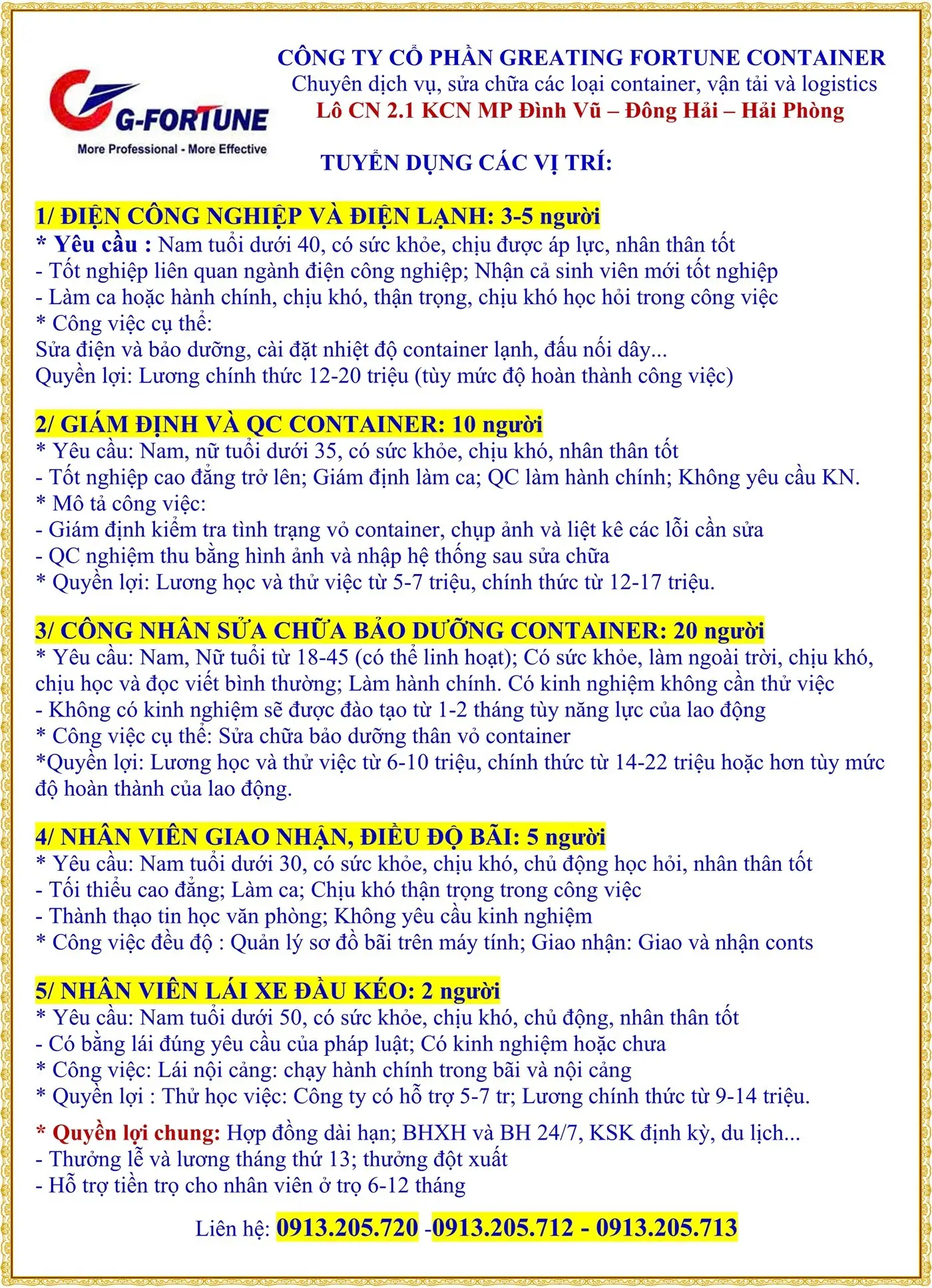 Viechaiphong.vn cung cấp tin tuyển dụng đa ngành, cập nhật hàng ngày và hỗ trợ ứng viên ứng tuyển trực tiếp tới nhà tuyển dụng