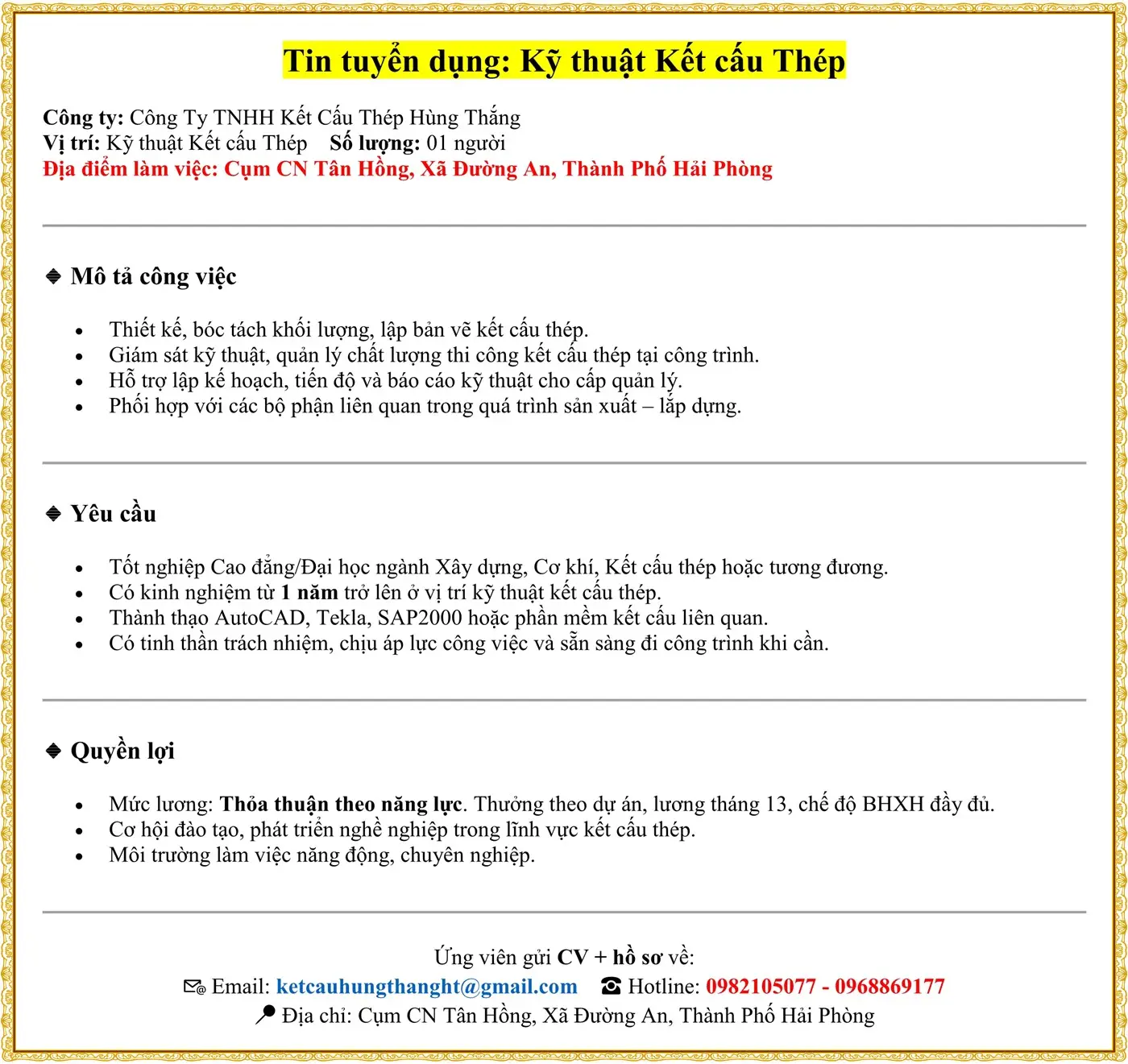 Viechaiphong.vn cung cấp tin tuyển dụng đa ngành, cập nhật hàng ngày và hỗ trợ ứng viên ứng tuyển trực tiếp tới nhà tuyển dụng